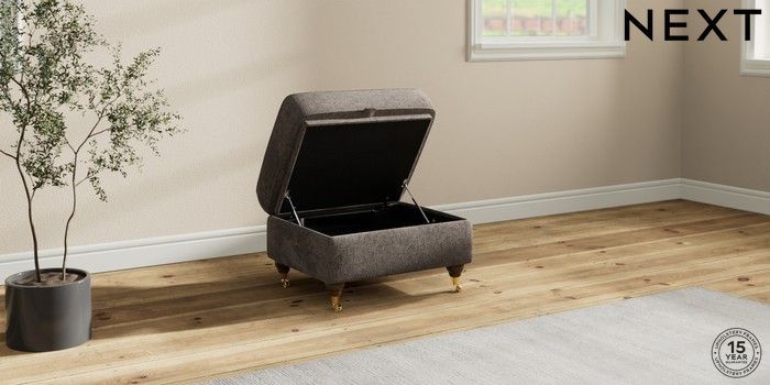 7.2.10 Ashford Highback Storage Footstool Chunky Chenille Mink Brown Castor - Mid | Made Click here to use our website with more accessibility support, for example screen readers