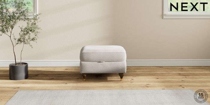 7.2.10 Ashford Highback Storage Footstool Chunky Chenille Oyster Modern Turned Metal Cap - Mid | Made Click here to use our website with more accessibility support, for example screen readers