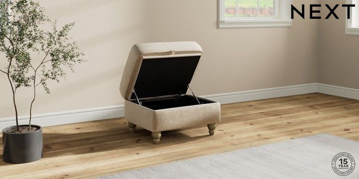 7.2.10 Ashford Highback Storage Footstool Chunky Weave Cream Low Turned - Light | Made Click here to use our website with more accessibility support, for example screen readers