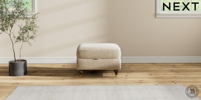 7.2.10 Ashford Highback Storage Footstool Chunky Weave Cream Modern Turned Metal Cap - Mid | Made Click here to use our website with more accessibility support, for example screen readers