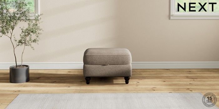 7.2.10 Ashford Highback Storage Footstool Chunky Weave Dark Natural Low Turned - Dark | Made Click here to use our website with more accessibility support, for example screen readers