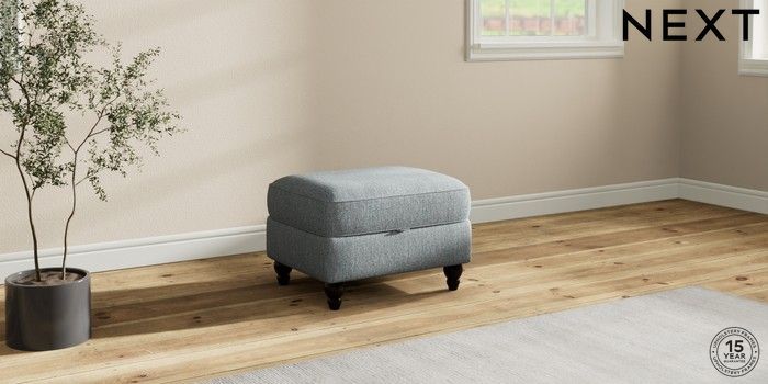 7.2.10 Ashford Highback Storage Footstool Chunky Weave Mid Blue Low Turned - Dark | Made Click here to use our website with more accessibility support, for example screen readers