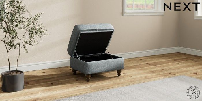 7.2.10 Ashford Highback Storage Footstool Chunky Weave Mid Blue Low Turned - Mid | Made Click here to use our website with more accessibility support, for example screen readers