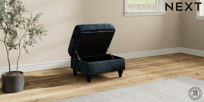 7.2.10 Ashford Highback Storage Footstool Distressed Velour Midnight Blue Low Turned - Dark | Made Click here to use our website with more accessibility support, for example screen readers