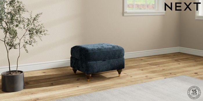 7.2.10 Ashford Highback Storage Footstool Distressed Velour Midnight Blue Modern Turned Metal Cap - Mid | Made Click here to use our website with more accessibility support, for example screen readers
