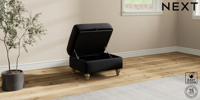 7.2.10 Ashford Highback Storage Footstool Fine Chenille Easy Clean Black Low Turned - Light | Made Click here to use our website with more accessibility support, for example screen readers