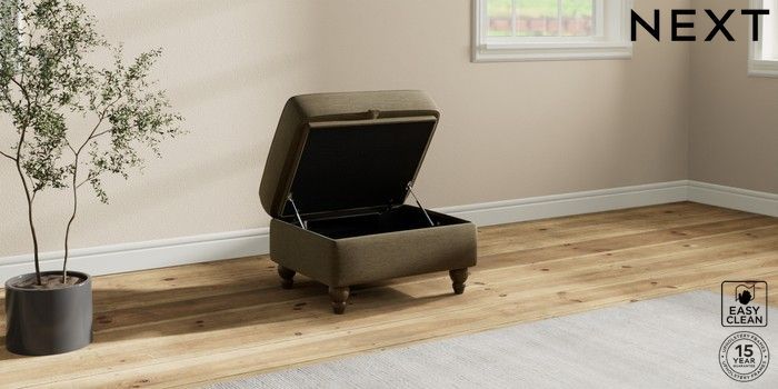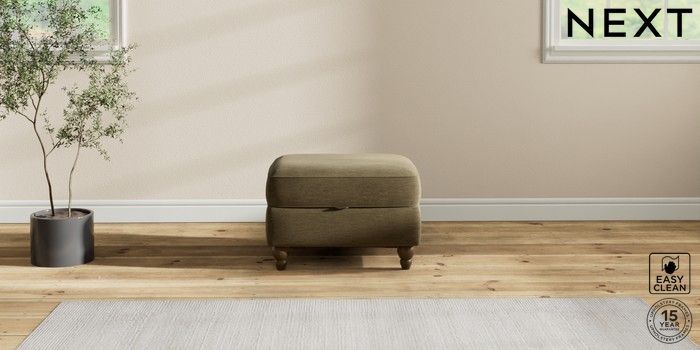 7.2.10 Ashford Highback Storage Footstool Fine Chenille Easy Clean Dark Moss Green Low Turned - Mid | Made Click here to use our website with more accessibility support, for example screen readers