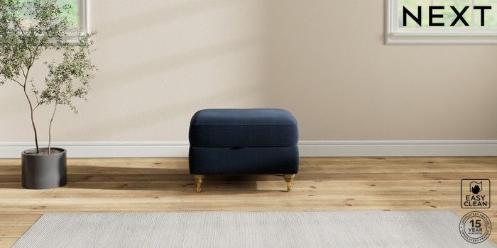 7.2.10 Ashford Highback Storage Footstool Fine Chenille Easy Clean Dark Navy Blue Castor - Light | Made Click here to use our website with more accessibility support, for example screen readers