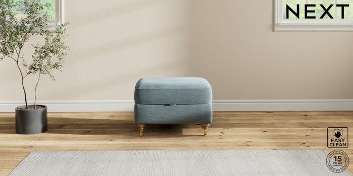 7.2.10 Ashford Highback Storage Footstool Fine Chenille Easy Clean Mid Blue Castor - Light | Made Click here to use our website with more accessibility support, for example screen readers