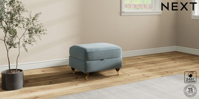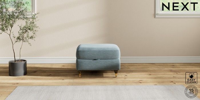7.2.10 Ashford Highback Storage Footstool Fine Chenille Easy Clean Mid Blue Castor - Mid | Made Click here to use our website with more accessibility support, for example screen readers
