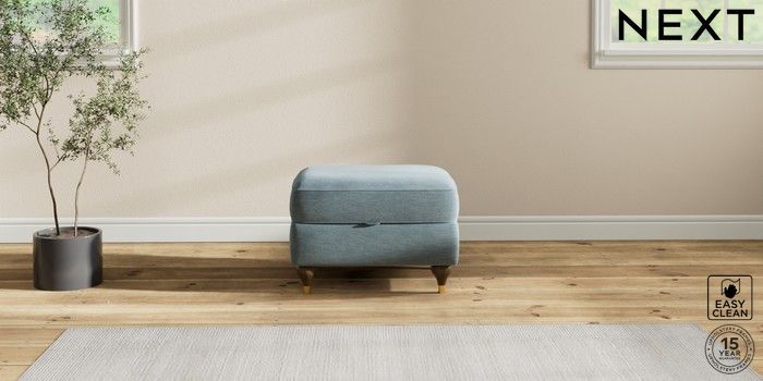 7.2.10 Ashford Highback Storage Footstool Fine Chenille Easy Clean Mid Blue Modern Turned Metal Cap - Mid | Made Click here to use our website with more accessibility support, for example screen readers