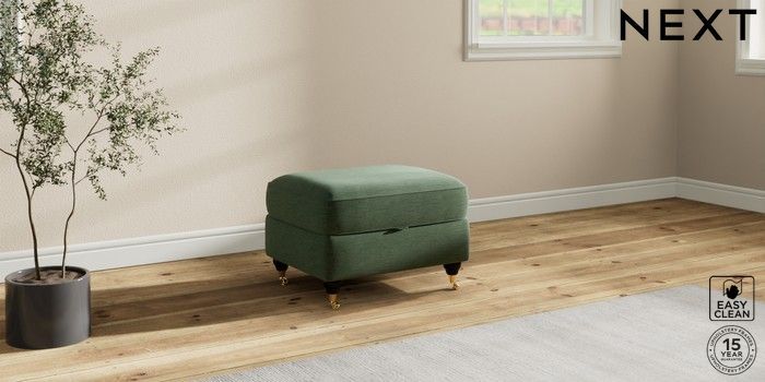 7.2.10 Ashford Highback Storage Footstool Fine Chenille Easy Clean Mid Khaki Green Castor - Dark | Made Click here to use our website with more accessibility support, for example screen readers