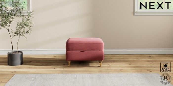 7.2.10 Ashford Highback Storage Footstool Fine Chenille Easy Clean Mid Pink Castor - Light | Made Click here to use our website with more accessibility support, for example screen readers