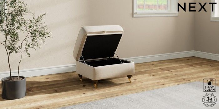 7.2.10 Ashford Highback Storage Footstool Fine Chenille Easy Clean Oyster Castor - Mid | Made Click here to use our website with more accessibility support, for example screen readers