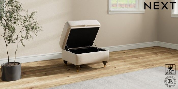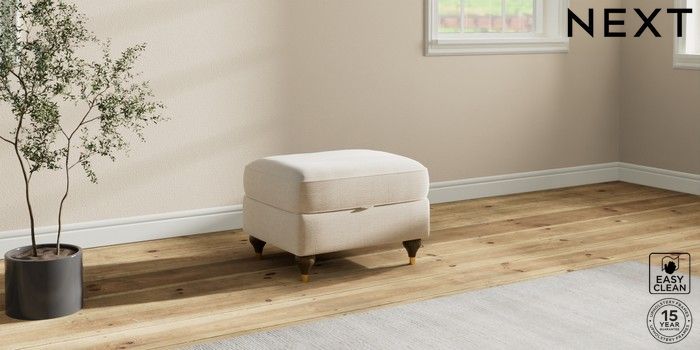 7.2.10 Ashford Highback Storage Footstool Fine Chenille Easy Clean Oyster Modern Turned Metal Cap - Mid | Made Click here to use our website with more accessibility support, for example screen readers