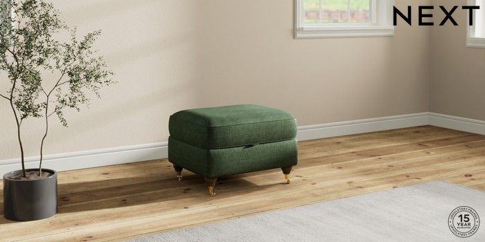 7.2.10 Ashford Highback Storage Footstool Luxe Chenille Dark Green Castor - Mid | Made Click here to use our website with more accessibility support, for example screen readers