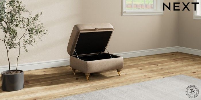 7.2.10 Ashford Highback Storage Footstool Luxe Chenille Mid Camel Beige Castor - Light | Made Click here to use our website with more accessibility support, for example screen readers