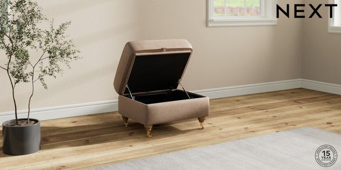 7.2.10 Ashford Highback Storage Footstool Luxe Chenille Mid Natural Castor - Light | Made Click here to use our website with more accessibility support, for example screen readers
