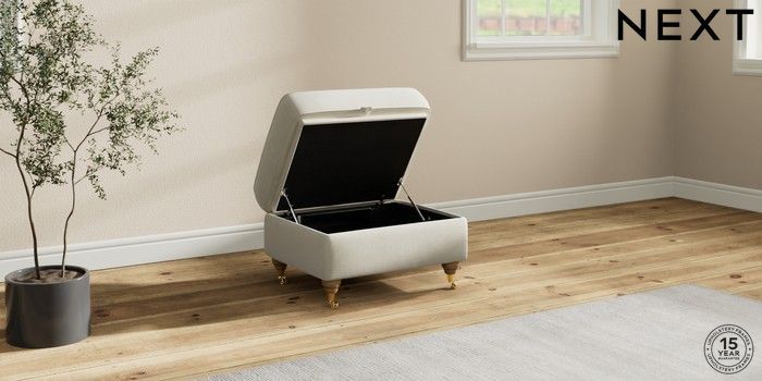 7.2.10 Ashford Highback Storage Footstool Luxe Chenille Oyster Castor - Light | Made Click here to use our website with more accessibility support, for example screen readers