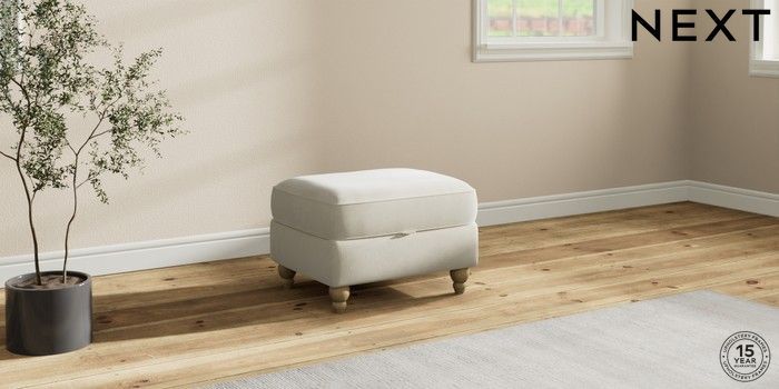 7.2.10 Ashford Highback Storage Footstool Luxe Chenille Oyster Low Turned - Light | Made Click here to use our website with more accessibility support, for example screen readers