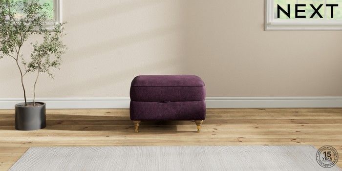 7.2.10 Ashford Highback Storage Footstool Plush Chenille Dark Plum Purple Castor - Light | Made Click here to use our website with more accessibility support, for example screen readers