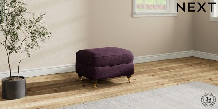 7.2.10 Ashford Highback Storage Footstool Plush Chenille Dark Plum Purple Castor - Mid | Made Click here to use our website with more accessibility support, for example screen readers