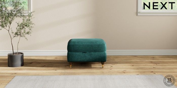 7.2.10 Ashford Highback Storage Footstool Plush Chenille Dark Teal Green Castor - Mid | Made Click here to use our website with more accessibility support, for example screen readers