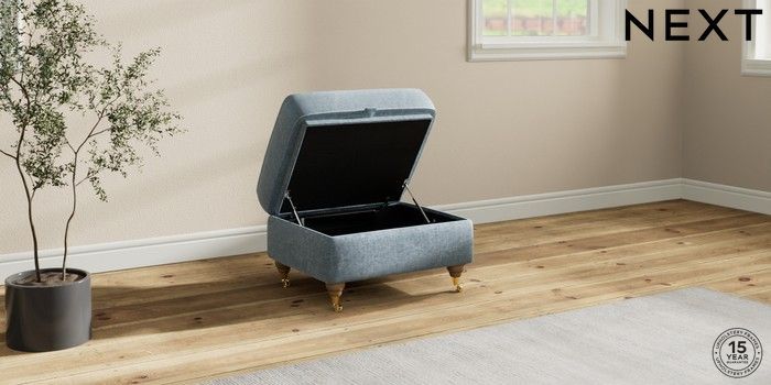 7.2.10 Ashford Highback Storage Footstool Plush Chenille Light Blue Castor - Light | Made Click here to use our website with more accessibility support, for example screen readers
