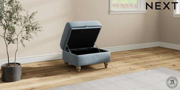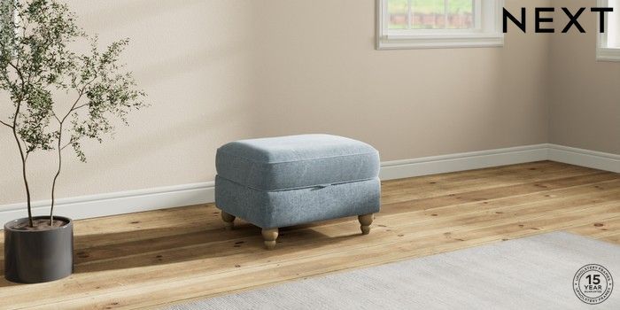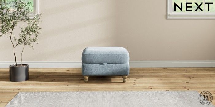 7.2.10 Ashford Highback Storage Footstool Plush Chenille Light Blue Low Turned - Light | Made Click here to use our website with more accessibility support, for example screen readers