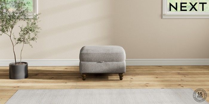 7.2.10 Ashford Highback Storage Footstool Plush Chenille Light Grey Low Turned - Mid | Made Click here to use our website with more accessibility support, for example screen readers