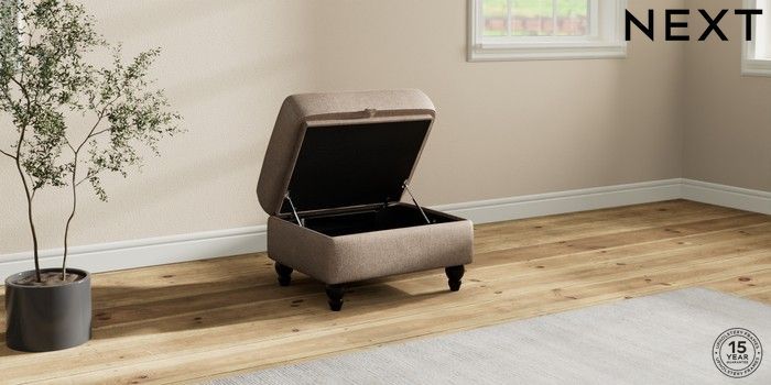 7.2.10 Ashford Highback Storage Footstool Plush Chenille Mid Natural Low Turned - Dark | Made Click here to use our website with more accessibility support, for example screen readers