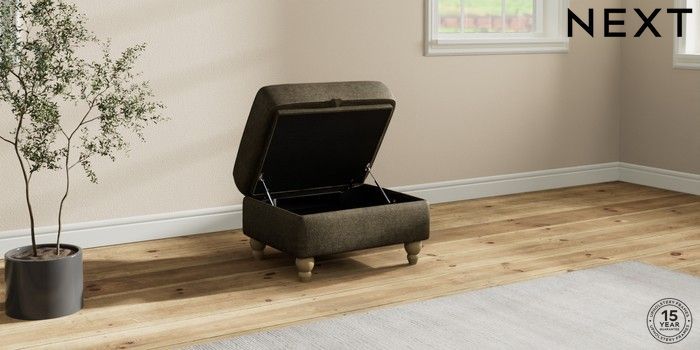 7.2.10 Ashford Highback Storage Footstool Plush Chenille Moss Green Low Turned - Light | Made Click here to use our website with more accessibility support, for example screen readers