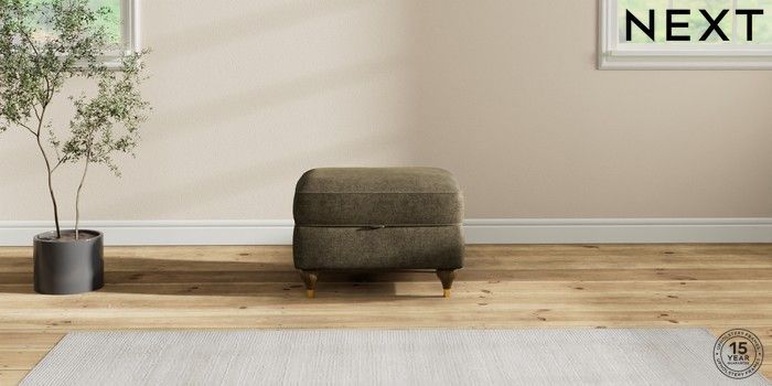 7.2.10 Ashford Highback Storage Footstool Plush Chenille Moss Green Modern Turned Metal Cap - Mid | Made Click here to use our website with more accessibility support, for example screen readers
