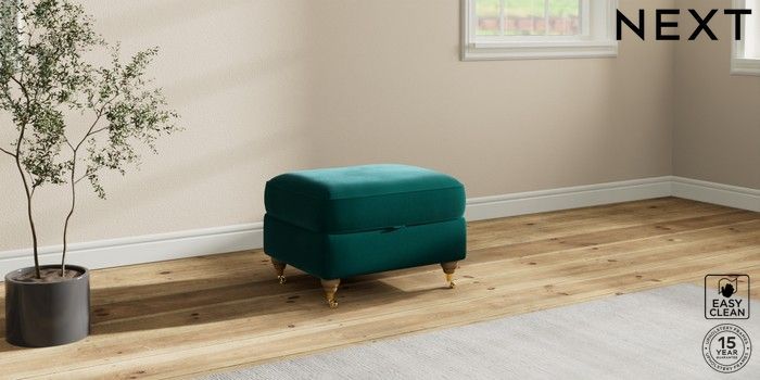 7.2.10 Ashford Highback Storage Footstool Plush Velvet Easy Clean Juniper Green Castor - Light | Made Click here to use our website with more accessibility support, for example screen readers