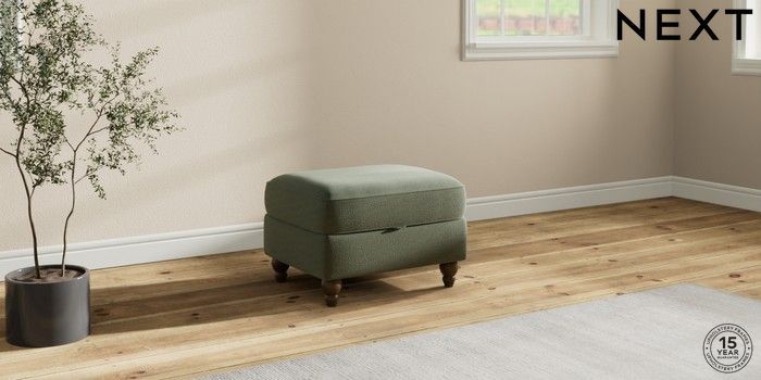 7.2.10 Ashford Highback Storage Footstool Relaxed Linen Look Dark Green Low Turned - Mid | Made Click here to use our website with more accessibility support, for example screen readers