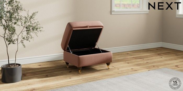 7.2.10 Ashford Highback Storage Footstool Relaxed Linen Look Light Rust Brown Castor - Mid | Made Click here to use our website with more accessibility support, for example screen readers