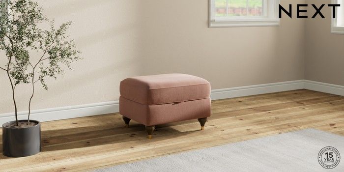 7.2.10 Ashford Highback Storage Footstool Relaxed Linen Look Light Rust Brown Modern Turned Metal Cap - Mid | Made Click here to use our website with more accessibility support, for example screen readers