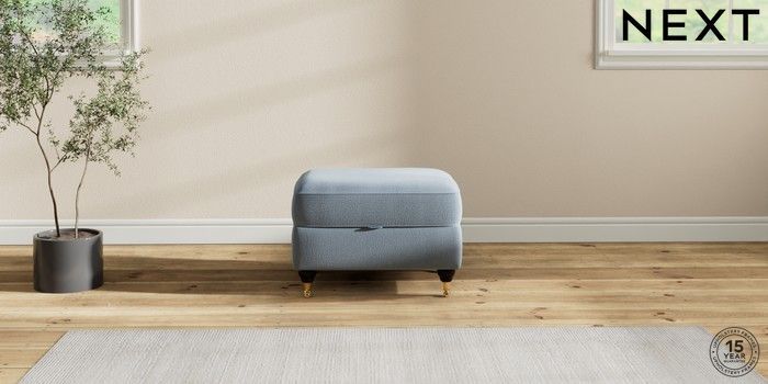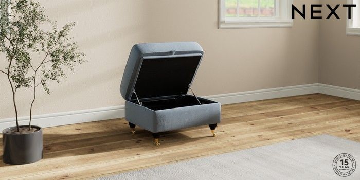 7.2.10 Ashford Highback Storage Footstool Relaxed Linen Look Mid Blue Castor - Dark | Made Click here to use our website with more accessibility support, for example screen readers
