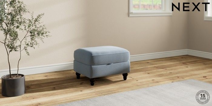 7.2.10 Ashford Highback Storage Footstool Relaxed Linen Look Mid Blue Low Turned - Dark | Made Click here to use our website with more accessibility support, for example screen readers