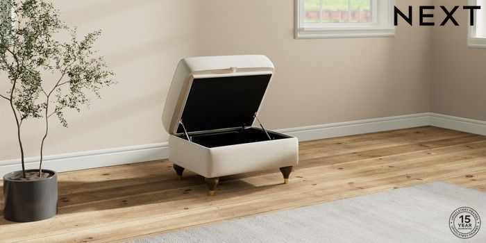 7.2.10 Ashford Highback Storage Footstool Relaxed Linen Look Oyster Modern Turned Metal Cap - Mid | Made Click here to use our website with more accessibility support, for example screen readers