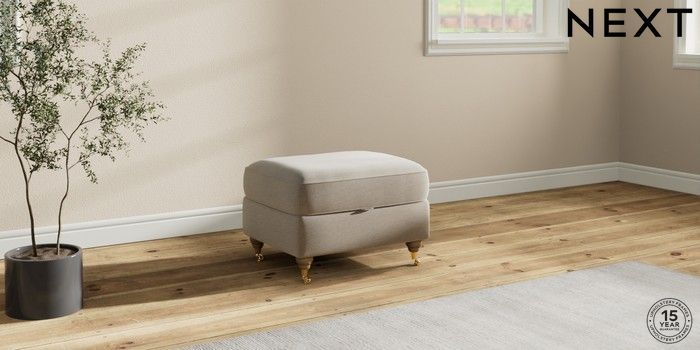 7.2.10 Ashford Highback Storage Footstool Ripple Chenille Light Natural Castor - Light | Made Click here to use our website with more accessibility support, for example screen readers
