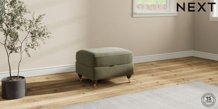 7.2.10 Ashford Highback Storage Footstool Ripple Chenille Mid Moss Green Castor - Mid | Made Click here to use our website with more accessibility support, for example screen readers