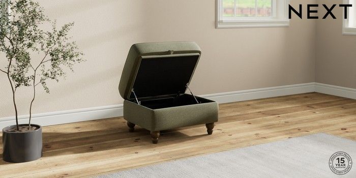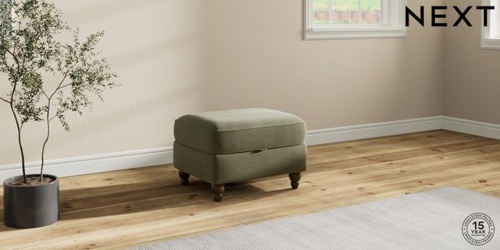 7.2.10 Ashford Highback Storage Footstool Ripple Chenille Mid Moss Green Low Turned - Mid | Made Click here to use our website with more accessibility support, for example screen readers