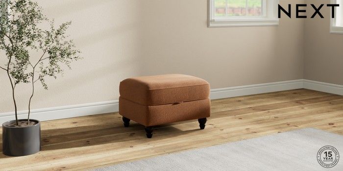 7.2.10 Ashford Highback Storage Footstool Ripple Chenille Mid Rust Brown Low Turned - Dark | Made Click here to use our website with more accessibility support, for example screen readers