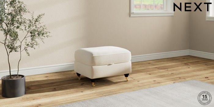 7.2.10 Ashford Highback Storage Footstool Ripple Chenille Oyster Castor - Dark | Made Click here to use our website with more accessibility support, for example screen readers