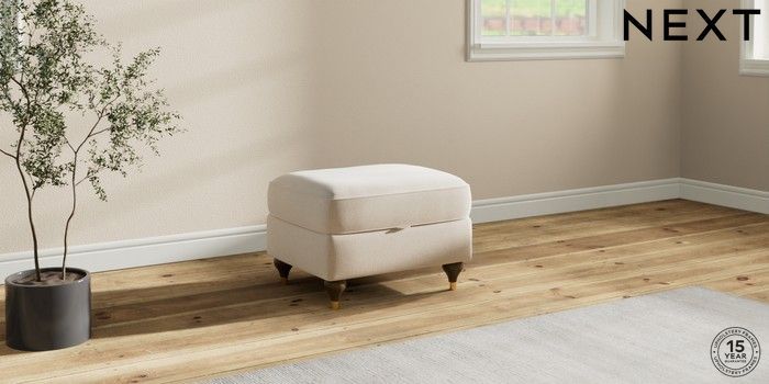 7.2.10 Ashford Highback Storage Footstool Studio Chenille Oyster Modern Turned Metal Cap - Mid | Made Click here to use our website with more accessibility support, for example screen readers
