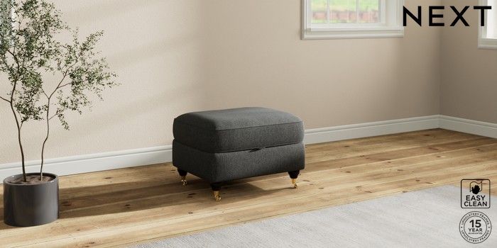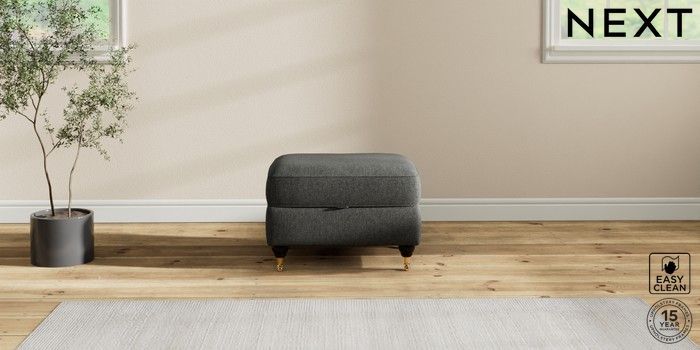 7.2.10 Ashford Highback Storage Footstool Tweedy Blend Easy Clean Charcoal Grey Castor - Dark | Made Click here to use our website with more accessibility support, for example screen readers