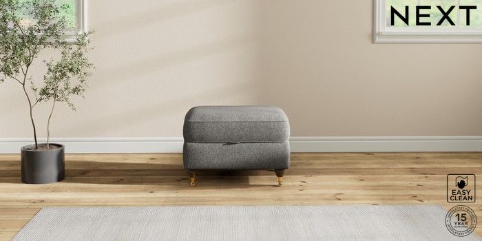 7.2.10 Ashford Highback Storage Footstool Tweedy Blend Easy Clean Dark Grey Castor - Mid | Made Click here to use our website with more accessibility support, for example screen readers