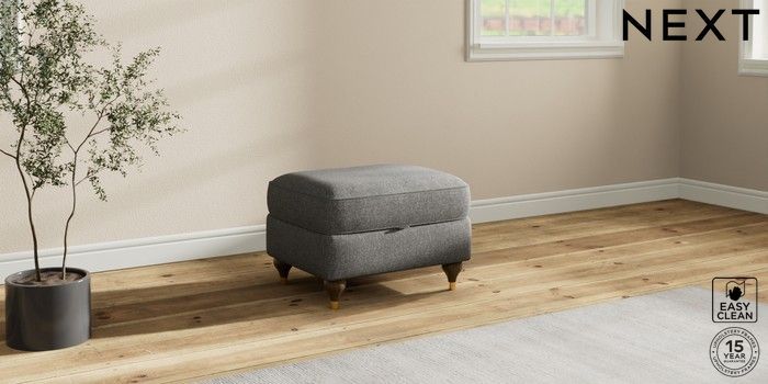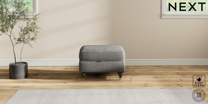 7.2.10 Ashford Highback Storage Footstool Tweedy Blend Easy Clean Dark Grey Modern Turned Metal Cap - Mid | Made Click here to use our website with more accessibility support, for example screen readers