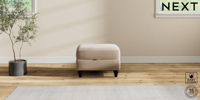 7.2.10 Ashford Highback Storage Footstool Tweedy Blend Easy Clean Light Dove Natural Low Turned - Dark | Made Click here to use our website with more accessibility support, for example screen readers